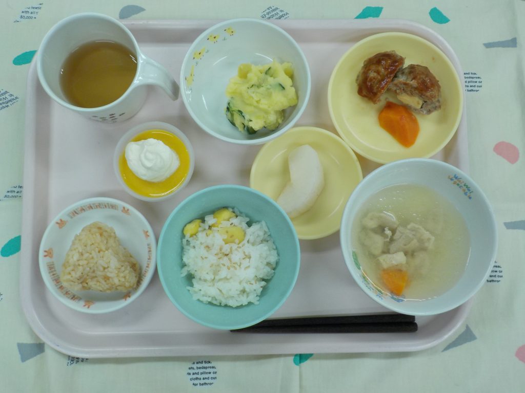 18日補食:たぬきおにぎり・麦茶