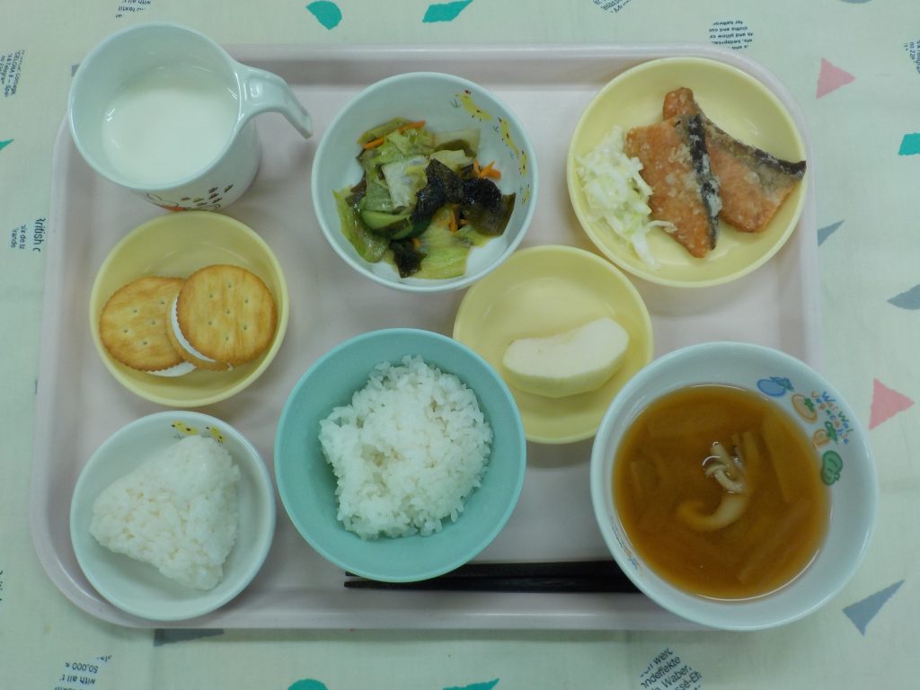 ごはん・鮭の竜田揚げ・チョレギサラダ・大根のみそ汁・りんご