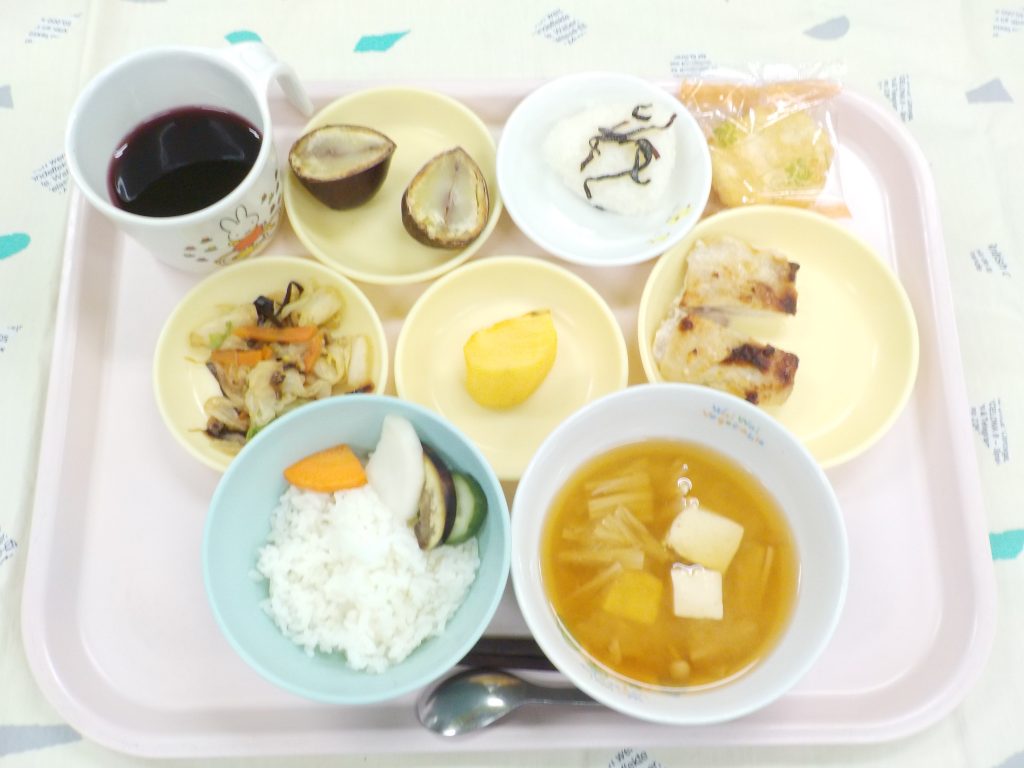 おやつ:ゆで栗・せんべい・ぶどうジュース