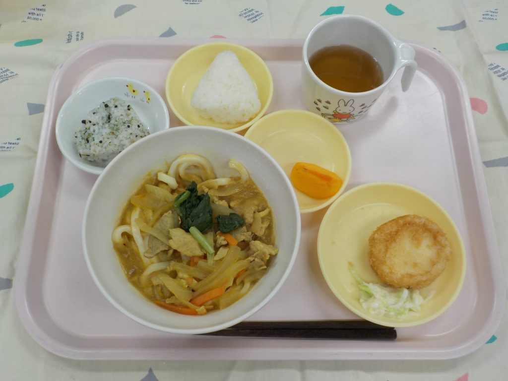 カレーうどん・チーズはんぺんフライ・柿