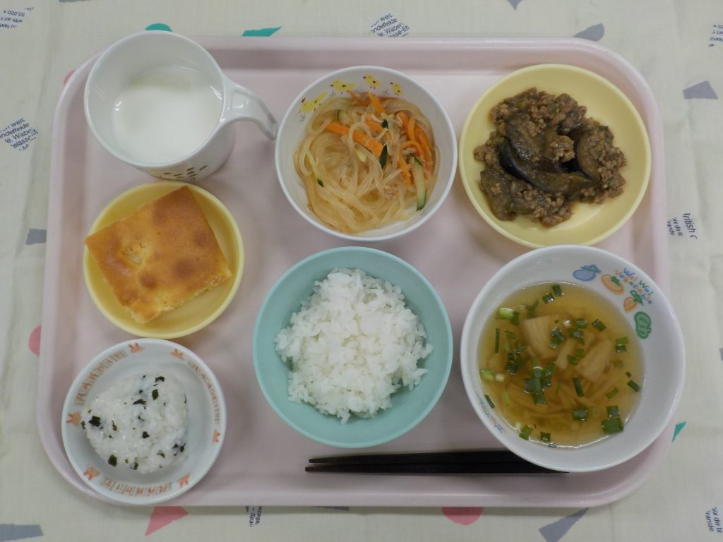 ごはん・マーボーナス・春雨サラダ・えのきの中華スープ