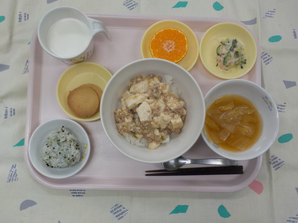 マーボー豆腐丼・大根サラダ・白菜のみそ汁・みかん