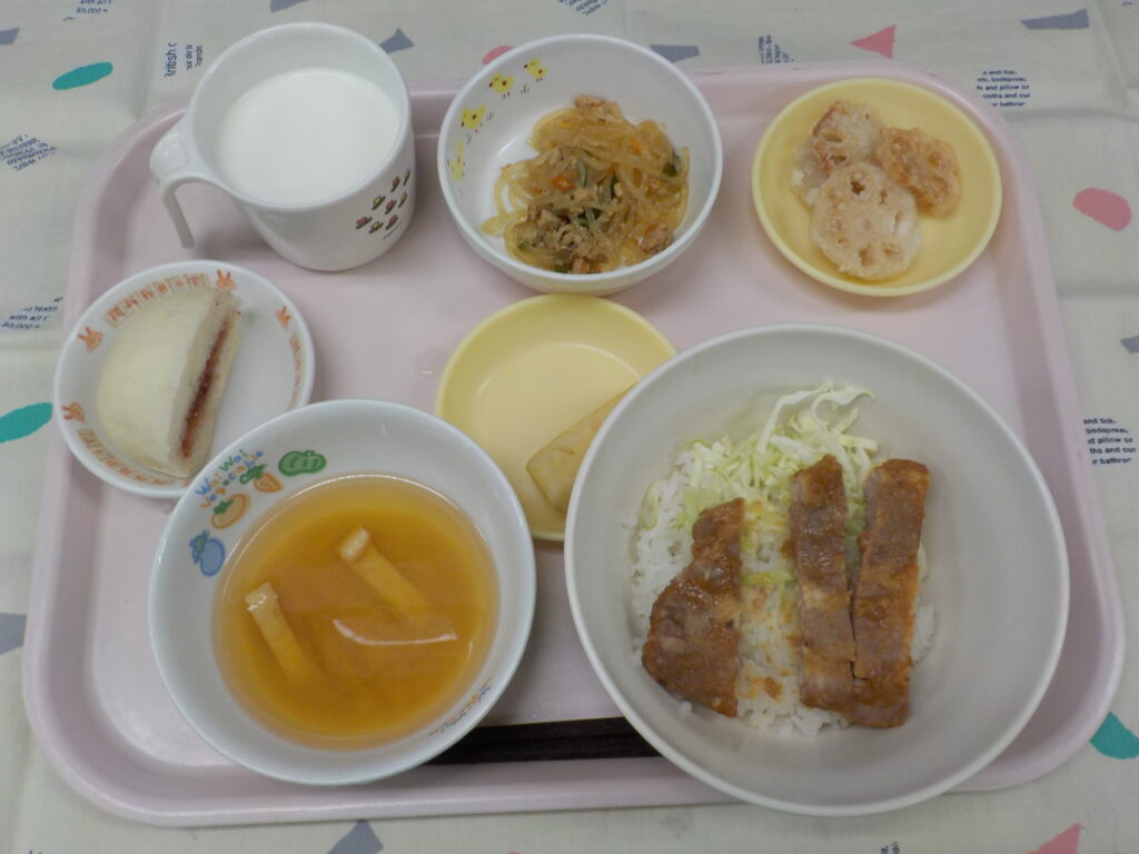 トンテキ丼・チャプチェ・大根のみそ汁・りんご