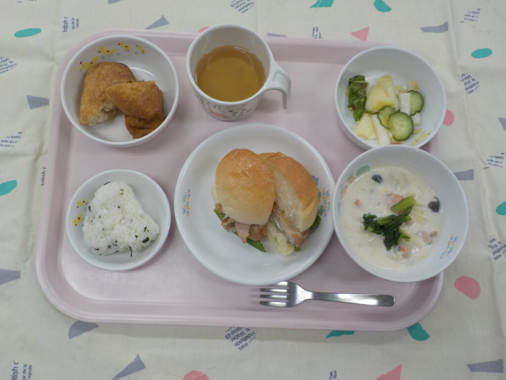 てりやきチキンバーガー・りんごサラダ・かぶチャウダー