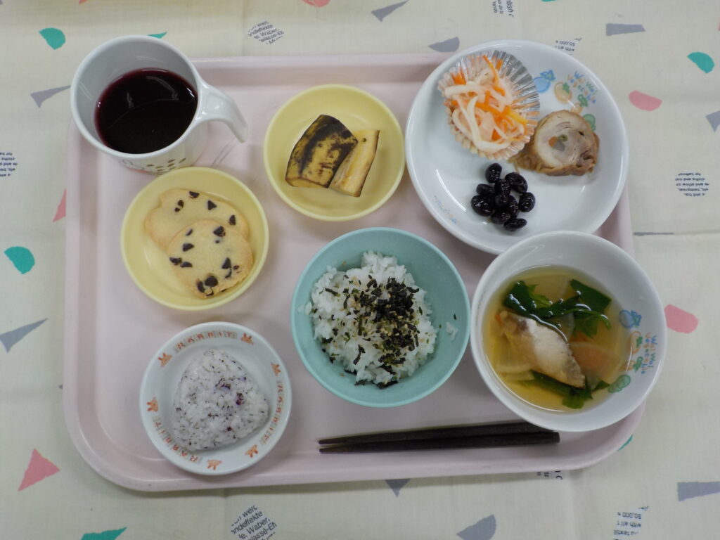 ふりかけごはん・八幡巻き・なます・ブリ雑煮・バナナ